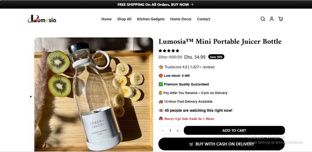 I designed a client’s Shopify store and built a dedicated high-converting product page to turn casual visitors into buyers. The goal was to improve clarity, trust, and urgency on the product page while ensuring the whole store performed fast on mobile and desktop — ultimately increasing conversion rate, average order value, and return purchases.